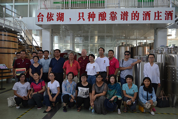 台依湖酒庄首席酿酒师兼总经理热拉尔·高林(Gerard Colin)以及酿酒师华玉波(我院校友)等陪同考察团参观了台依湖已经正式营业的零零柒酒庄,酿造车间、灌装线以及葡萄园。高林是一个名副其实的中国通,在中国的新疆、蓬莱产区都工作过,也是葡萄酒学院的老朋友。考察团在台依湖天鹅堡酒吧进行了葡萄酒品鉴,共品鉴了干白、干红、桃红、甜红、甜白12款葡萄酒。台依湖葡萄酒的质量得到了考察团的肯定,王华院长在品鉴结束后给台依湖酒庄提了两点建议:1) 尽量降低某些甜型葡萄酒的甜度,做半干、半甜葡萄酒;2)白葡萄酒尽量不进橡木桶,最优化保持浆果的自然香气。